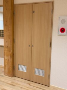 オーダー建具 【建具】帯広市 某施設 2026.02.04 帯広市の某施設に建具を納めさせて頂きました。 上記写真は片開きドアです。ガラリを取り付け採光タイプで製作しています。 下記写真は引戸と物入の両開き戸です こちらもガラリの取り付けと、採光タイプです Tweet Share +1 Hatena Pocket RSS feedly Pin it 【家具】ロッカー等造作家具